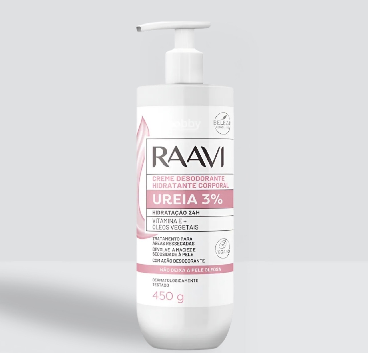 CREME DESODORANTE HIDRATANTE CORPORAL UREIA 3% RAAVI 450g