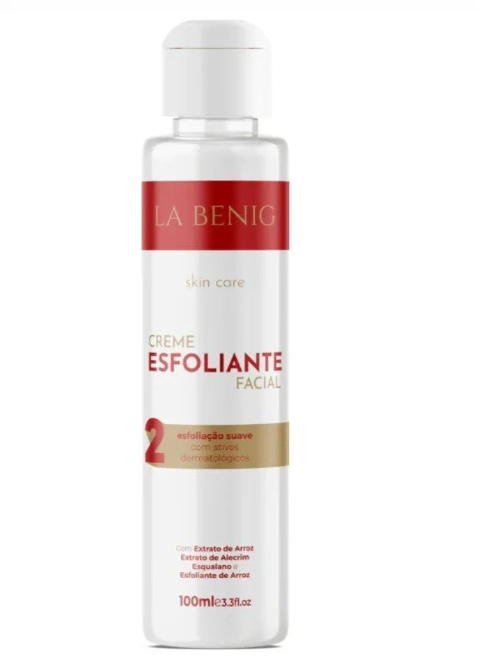 O Creme Esfoliante Facial LA BENIG possui uma esfoliação suave e ajuda a reequilibrar a pele. Possui cinto ativos dermatológicos poderosos: -Manteiga de Karite: combate ao ressecamento da pele; -Óleo de Oliva: melhora a elasticidade; -Squalano: hidratação profunda da pele; -Extrato de Arroz: Ativo Antioxidante para proteção da pele contra envelhecimento; -Extrato de Alecrim: tonifica, hidrata e acalma a pele; -Melhora a elasticidade e sedosidade da pele; -Promove hidratação profunda e maciez para a pele.