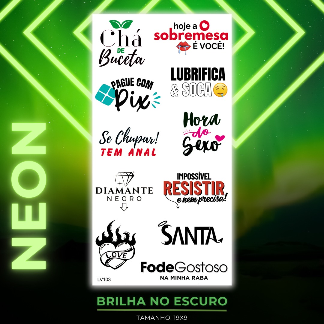 TATUAGEM INTIMA TEMPORARIA NEON BRILHAM NO ESCURO